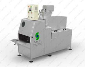 The steam (Hot water) stretcher is a machine designed for the production of pasta filata cheeses using, as raw materials, industrial curds, fresh curds and food ingredients. The raw material to be transformed is directly introduced into a processing chamber, and it is subject to the combined action of conical counter-rotating and steam heated water. During this processing phase, dough starts to change its structure, passing from a coarse and discontinuous consistence to a fibrous and continuous one, typical of the pasta filata. Once the pasta has reached the desired features, it will be discharged by its gravity.